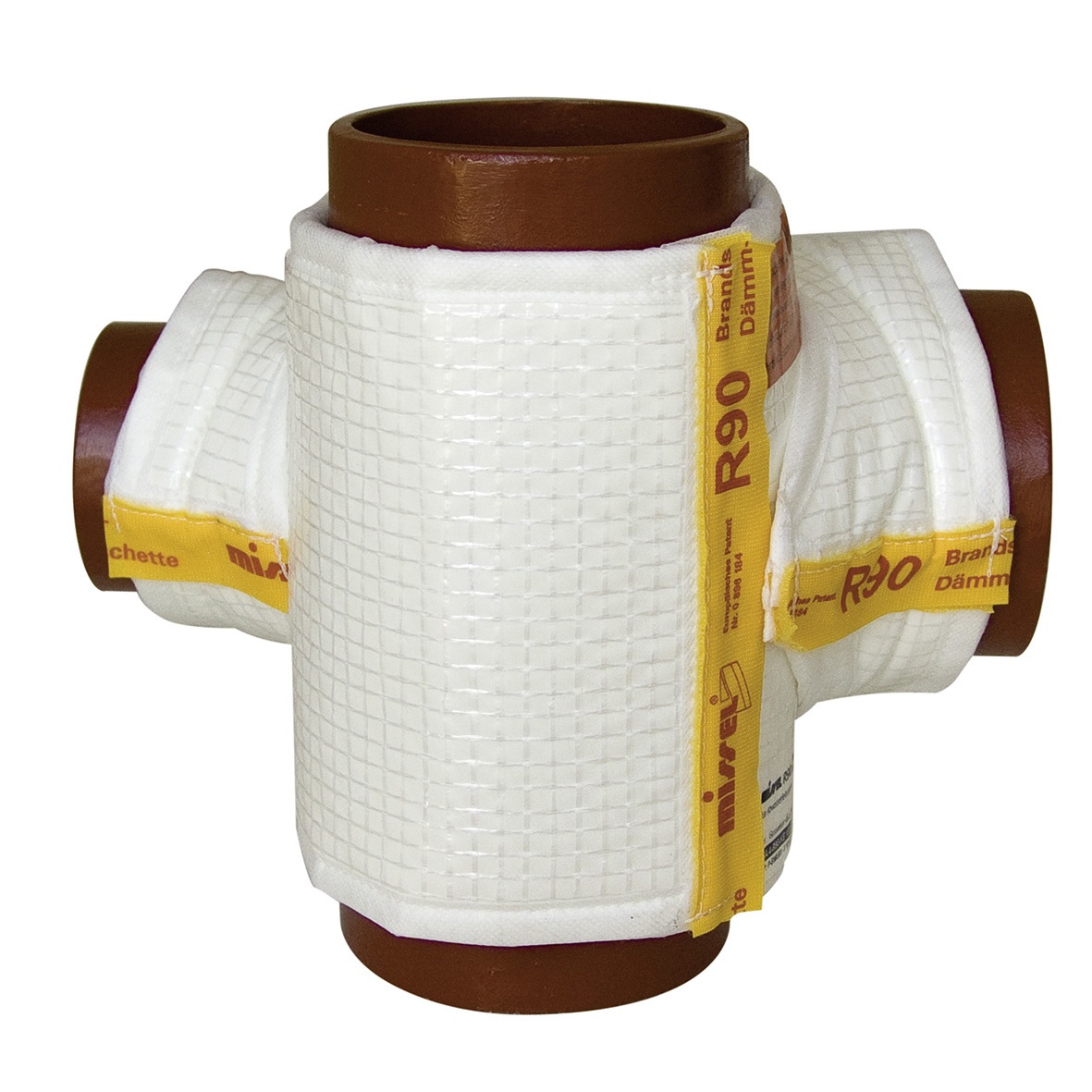 R90 Brandschutz-Dämm-Manschette, körperschallentkoppelt, zur Durchführung von Kombinationsabzweigen aus Stahl und Gusseisen durch Wand und Decke