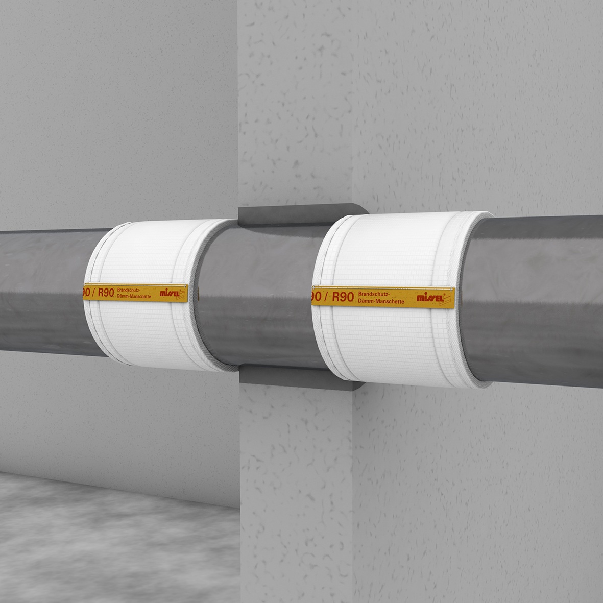 R90 Brandschutz-Dämm-Manschette, körperschallentkoppelt, zur Durchführung von LORO-X Verbundrohre und Silent Verbundrohre durch Wand