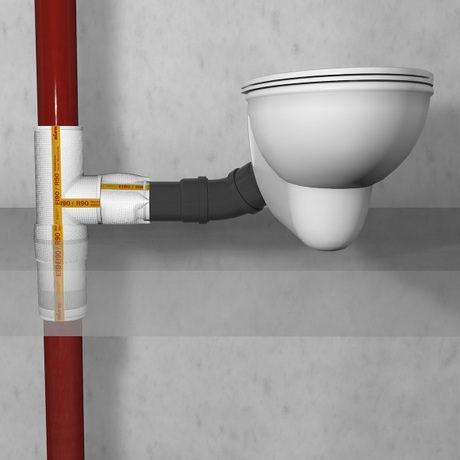 - Für Mischinstallationen von gusseisernen Abwasserleitungen und im Deckenbereich angeordneten Abzweigen mit seitlich angeschlossenen brennbaren Abwasserleitungen